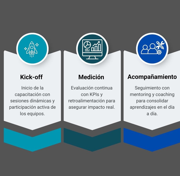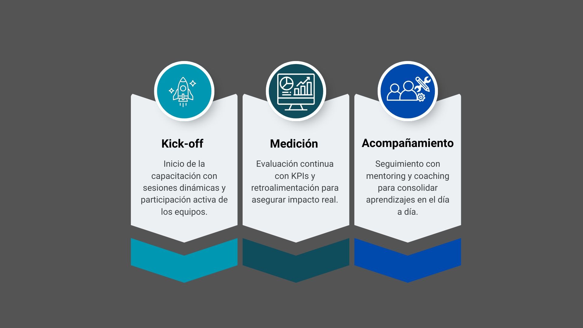 No solo entrenar personas, sino impactar indicadores clave: innovación, eficiencia, cultura organizacional y adaptación digital.